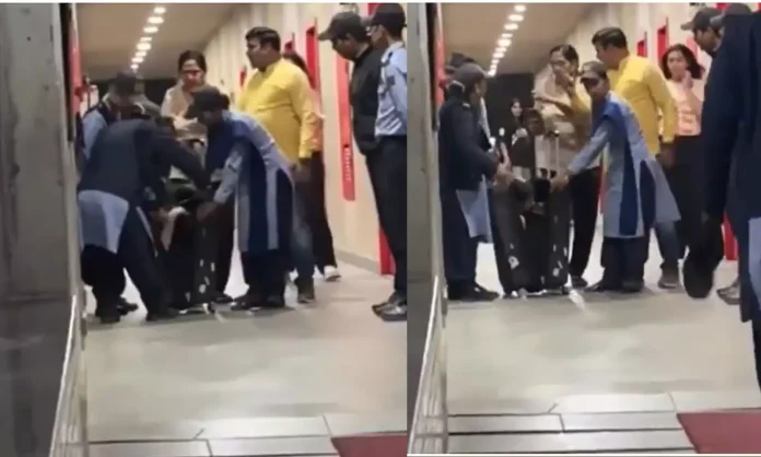 தற்போது வைரலாகி வரும் காணொளியில், காரிடாரில் வைத்து சில காவலர்கள் ஒரு பெரிய சூட்கேஸைத் திறப்பதைக் காணலாம். சூட்கேஸ் திறந்ததும், அதனுள் இருந்து ஒரு பெண் வெளியே வருகிறாள்.