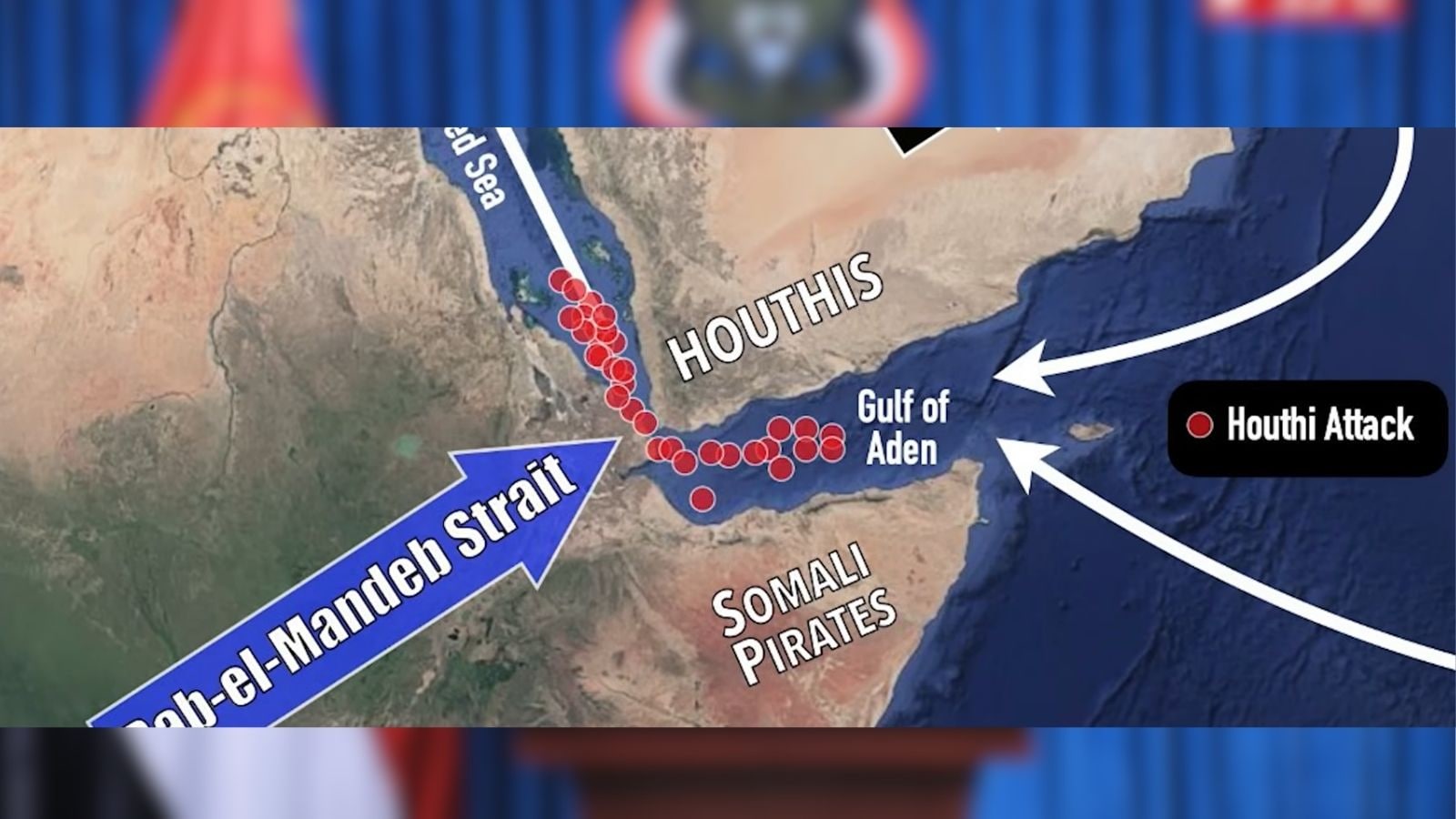 அமெரிக்கா தனது யுஎஸ்எஸ் ஜெரால்ட் ஆர். ஃபோர்டு (USS Gerald R. Ford) போன்ற போர்க்கப்பல்களை இப்பகுதிக்கு அனுப்ப வேண்டிய கட்டாயத்திற்குத் தள்ளப்படலாம். ஏமனின் ஹூதி கட்டுப்பாட்டுப் பகுதிகளிலிருந்து , குறிப்பாக சனா மற்றும் ஹொடைடா இஸ்ரேலின் தெற்குப் பகுதியான ஈலாட் (Eilat) வரையிலான வான்வழித் தூரம் சுமார் 1,700 முதல் 1,900 கிலோமீட்டர்கள் ஆகும்.