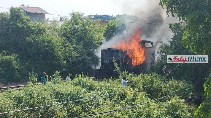 இன்று மதியம் கொழும்பிலிருந்து வந்த ரயிலின் பெட்டிகளை இடமாற்றும் பணியில் குறித்த இயந்திரம் ஈடுபடுத்தப்பட்டிருந்த போதே, திடீரென இந்தத் தீ விபத்து ஏற்பட்டுள்ளது.